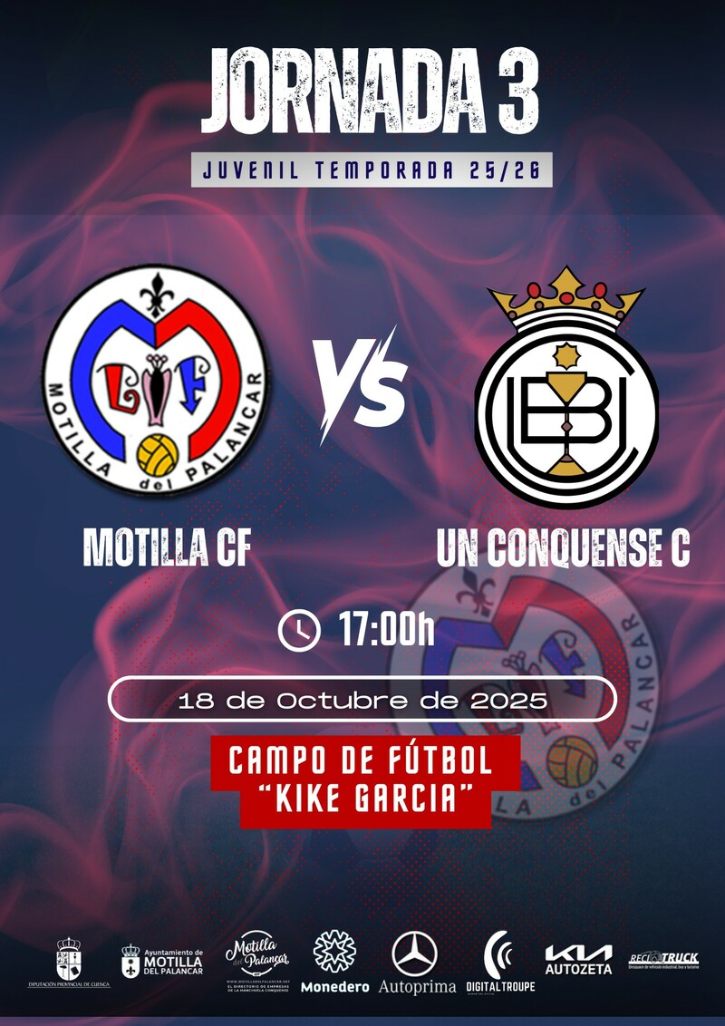 El sábado 18 de octubre a las 17:00 horas, el equipo juvenil del Motilla CF recibirá en casa al UB Conquense B en el Campo “Kike García”. Los jóvenes motillanos, que han arrancado la temporada con dos triunfos consecutivos, quieren mantener la buena racha y confirmar su excelente inicio de curso.