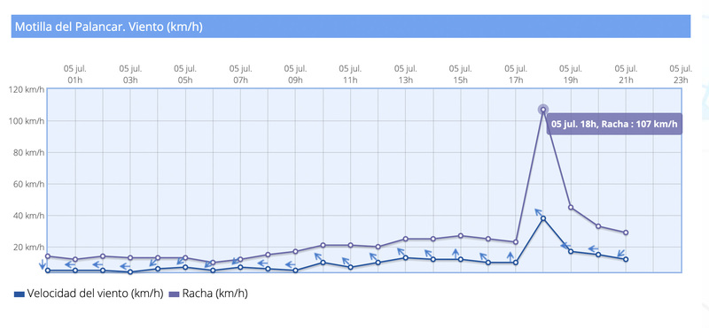 Hasta 107 km/h llegaron a alcanzar las rachas de viento en Motilla del Palancar según los datos ofrecidos por AEMET.