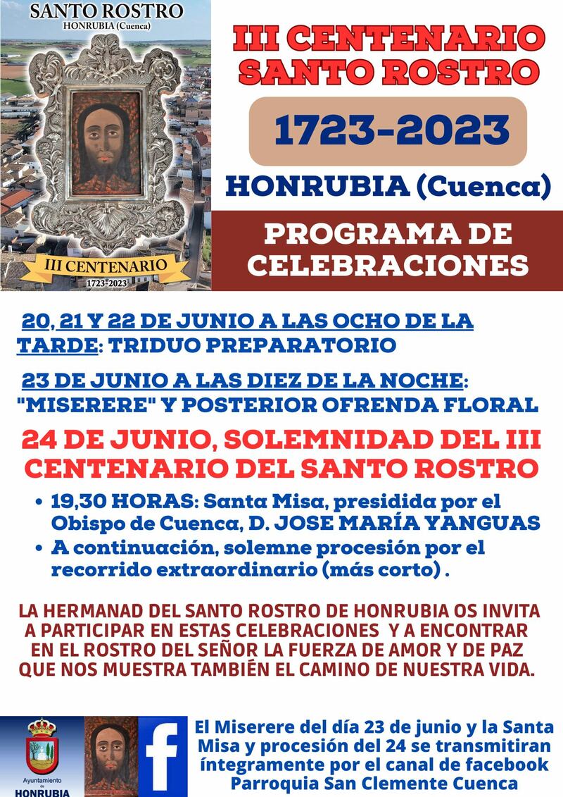 Honrubia se prepara para conmemorar de manera especial el III Centenario del Santo Rostro, patrón del pueblo, en un evento cargado de significado religioso. El sábado 24 de junio será el día clave en el que se llevarán a cabo las principales celebraciones en honor al Santo Rostro.