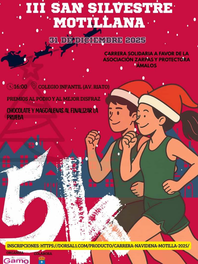Motilla del Palancar despedirá el año con la III San Silvestre Motillana 2025, una carrera solidaria de 5 kilómetros que se celebrará el 31 de diciembre, a partir de las 16:00 horas, con salida desde el Colegio Infantil de la avenida del Riato. La prueba combina deporte, ambiente navideño y solidaridad a favor de la Asociación Zarpas y la protectora Ámalos.
