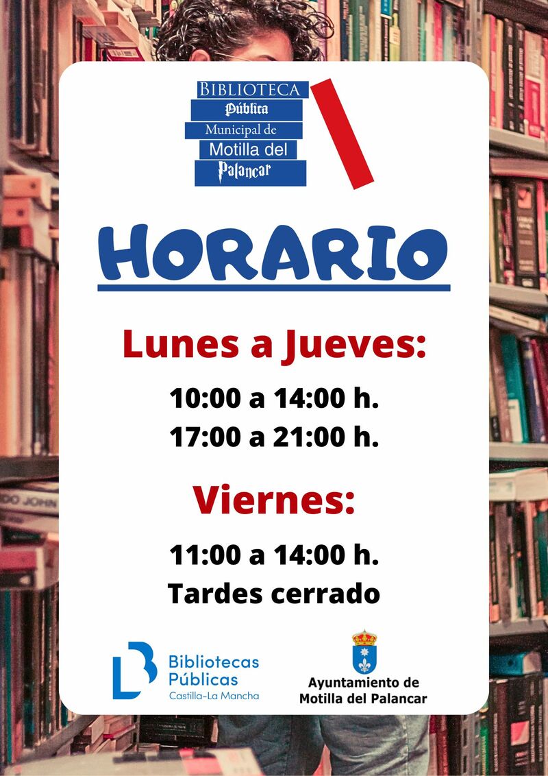 Os recordamos que con el fin del verano, la Biblioteca de Motilla del Palancar vuelve a su horario habitual. Adicionalmente, se comunica que la ampliación especial en el préstamo domiciliario, que fue implementada este verano, ha finalizado. A partir de este momento, los plazos se establecen nuevamente en 3 semanas para los libros y cómics, y una semana para la música y películas.
