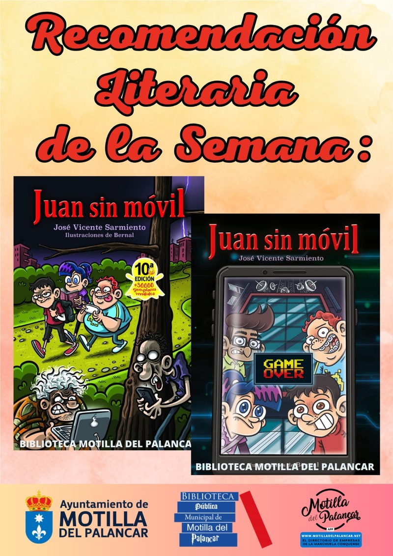 La recomendación de esta semana es una novedad que lleva muy poquito tiempo en la Biblioteca de Motilla del Palancar y va recomendada, como no podía ser de otra forma, ya que ayer mismo, jueves 20 de noviembre, se celebraba el Día Mundial de la Infancia, a nuestros pequeños lectores, concretamente a aquellos comprendidos entre los 9 y los 11 años. Se trata de la saga “Juan sin móvil” de José Vicente Sarmiento y José Antonio Bernal.