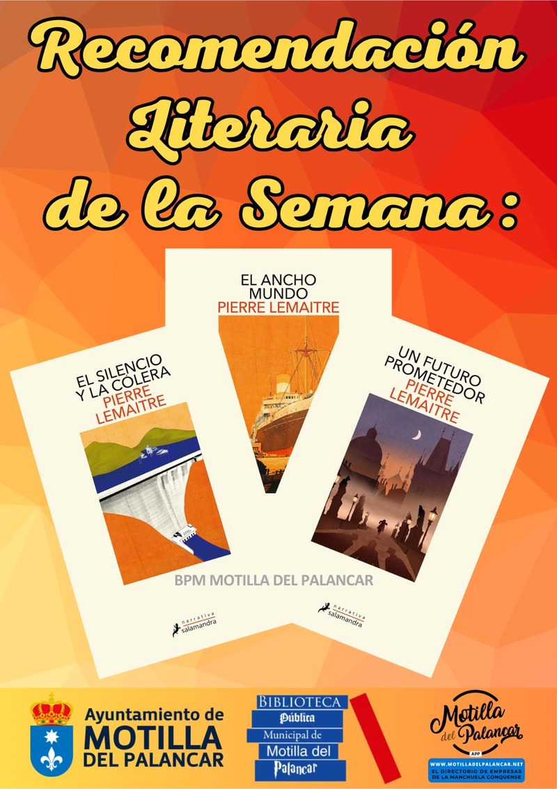 La recomendación de esta semana es una novedad en la Biblioteca de Motilla del Palancar y va dirigida a todos nuestros lectores, amantes de la buena novela realista y social: se trata de la trilogía “Los años gloriosos” de Pierre Lemaitre, compuesta por “El ancho mundo” (2023), “El silencio y la cólera” (2024) y “Un futuro prometedor” (2025).