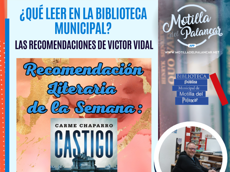 Los amantes de la novela negra tienen una nueva propuesta en la Biblioteca Municipal de Motilla del Palancar. Esta semana, la recomendación de Víctor Vidal es “Castigo”, de Carme Chaparro, una escritora y presentadora de televisión con una destacada trayectoria en el género policíaco. Una historia impactante que combina un crimen estremecedor, una investigación intensa y los entresijos del mundo de los medios de comunicación.