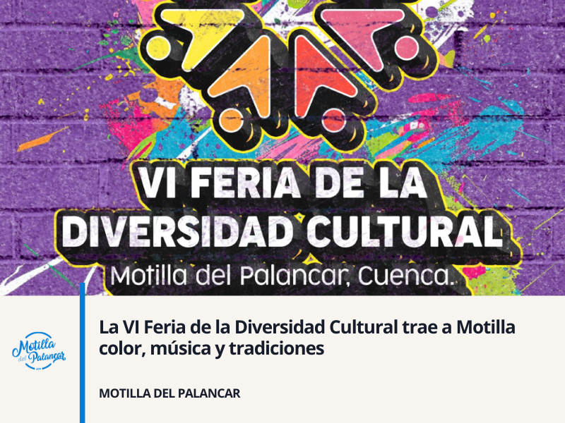 Motilla del Palancar acoge los días 6 y 7 de junio la VI Feria de la Diversidad Cultural, un evento gratuito que reunirá música, talleres, gastronomía y folclore de distintos países. La programación incluye más de 20 actividades en el Espacio Multiusos y la Casa de la Cultura, con el objetivo de promover la convivencia y la riqueza cultural del municipio.