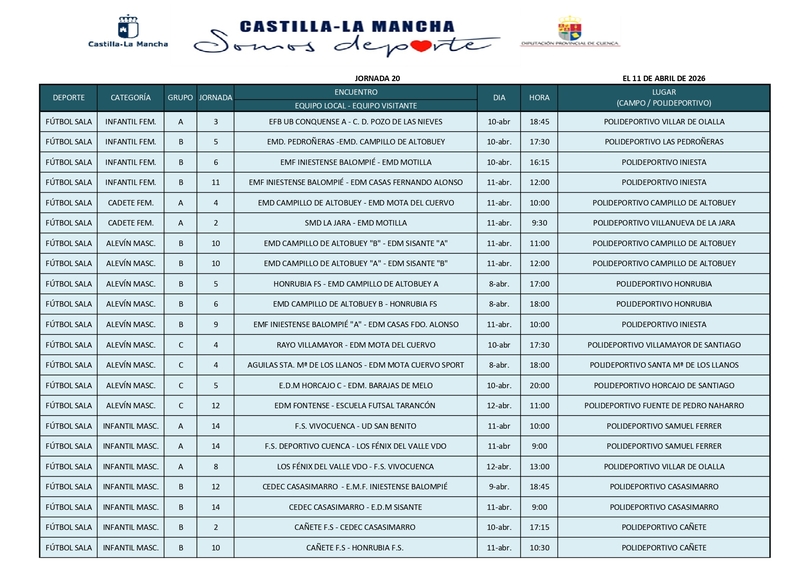 El Deporte Escolar alcanza su vigésima edición con una nueva programación de fútbol y fútbol sala que se desarrollará entre el 8 y el 12 de abril en distintos municipios. Durante estos días, equipos de base volverán a competir en varias categorías dentro de una cita ya asentada en el calendario.