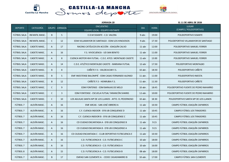 Los partidos se disputarán en polideportivos y campos de fútbol, con horarios distribuidos a lo largo de varios días en función de cada categoría.
