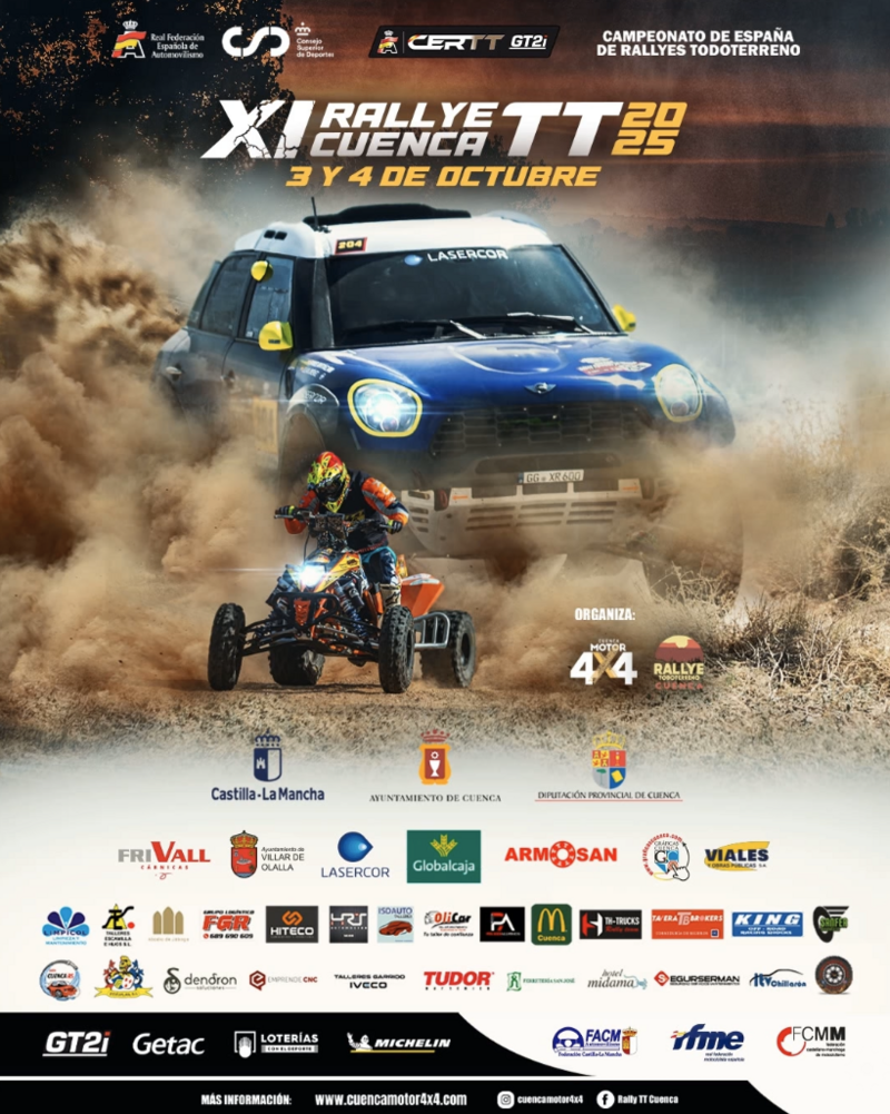 El XI Rallye TT de Cuenca se disputará los días 3 y 4 de octubre de 2025, convirtiéndose en la última prueba del Campeonato de España de Rallyes Todo Terreno. La carrera recorrerá la Serranía conquense y pasará por 25 municipios.