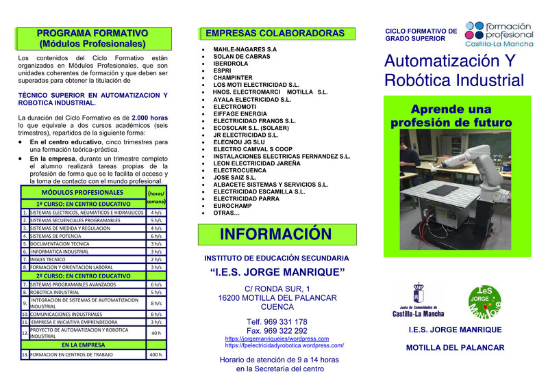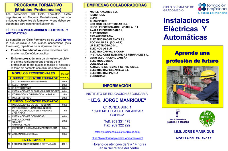 Modulos de Grado Medio y Superior de Electricidad y Electrónica en el I.E.S Jorge Manrique de Motilla del Palancar