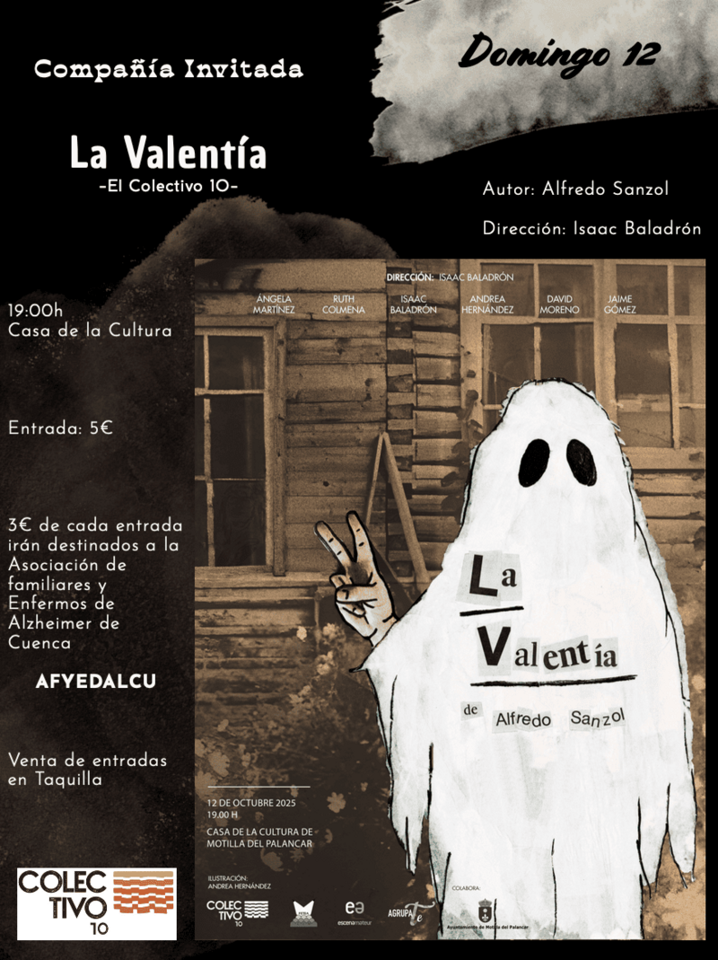 El festival se inaugura el domingo 12 de octubre con la obra La Valentía, de Alfredo Sanzol, a cargo de la compañía El Colectivo 10 bajo la dirección de Isaac Baladrón. La representación, que comenzará a las 19:00 horas, tendrá además un carácter solidario: 3 euros de cada entrada, con un precio total de 5 euros, se destinarán a la Asociación de Familiares y Enfermos de Alzheimer de Cuenca (AFYEDALCU).