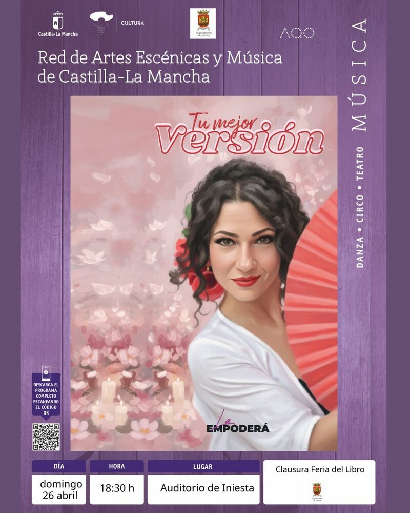 El domingo 26 de abril, el Auditorio de Iniesta acoge a las 18:30 horas el espectáculo “Tu mejor versión”, de La Empoderá, dentro de la Red de Artes Escénicas y Música de Castilla-La Mancha.