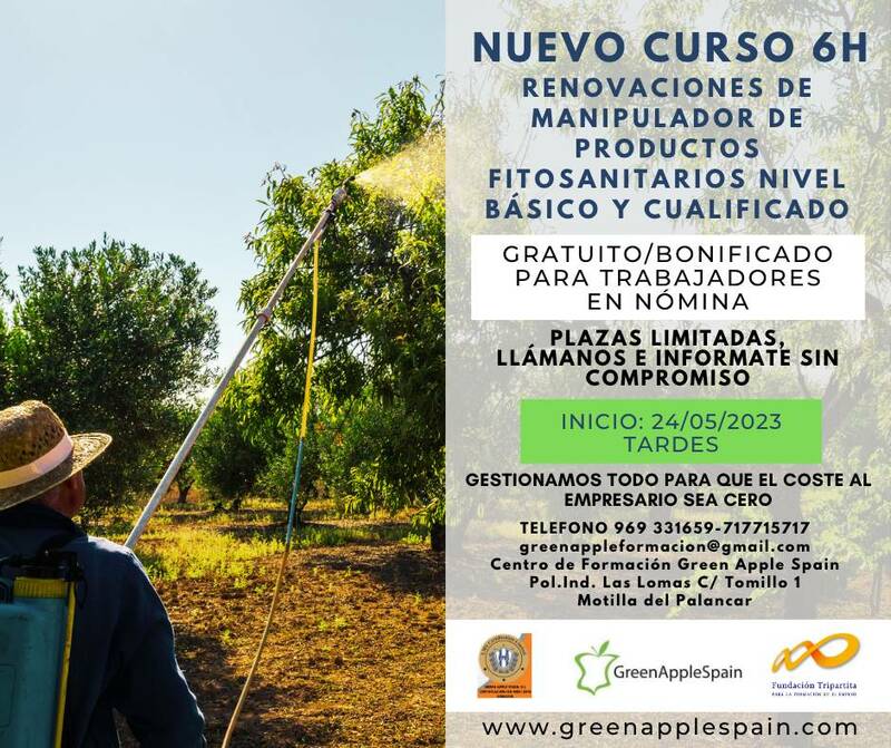 El Centro de Formación Green Apple Spain se complace en ofrecerte un curso de renovación diseñado específicamente para este propósito. Con una duración de 6 horas, este curso te brindará los conocimientos y las habilidades necesarias para cumplir con los requisitos actualizados en la manipulación de productos fitosanitarios. Y lo mejor de todo, ¡es gratuito/bonificado para trabajadores en nómina! Esta es una oportunidad única que no puedes dejar pasar.