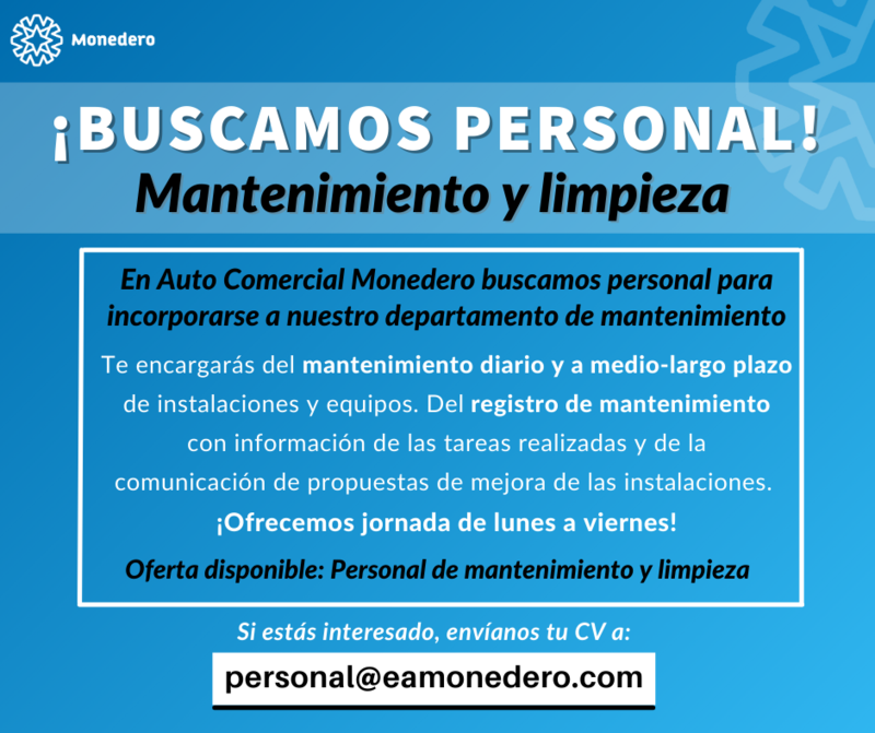 Si estás buscando empleo en Motilla del Palancar, el último anuncio de Auto Comercial Monedero te interesa. Desde Monedero necesita nuevo personal para incorporarse al departamento de mantenimiento.