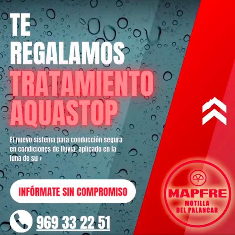 ¡Oficina de MAPFRE MOTILLA DEL PALANCAR te invita a disfrutar de kilómetros sin lluvia con su tratamiento AQUASTOP GRATIS!