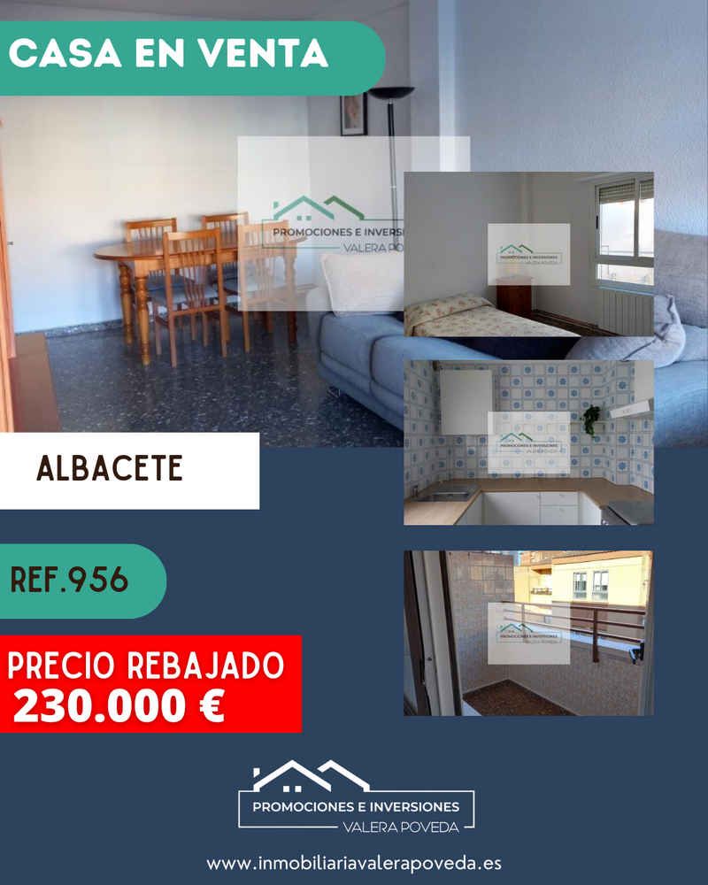 Además de inmuebles en venta, Valera Poveda también dispone de oportunidades de alquiler. En este caso, se ofrece un piso en alquiler en Motilla del Palancar, con precio rebajado de 550 euros al mes. La vivienda cuenta con 100 metros cuadrados, dispone de tres habitaciones y dos baños, e incluye terraza. Se trata de una alternativa muy atractiva para quienes buscan alquilar una vivienda amplia, funcional y lista para entrar a vivir en la localidad.