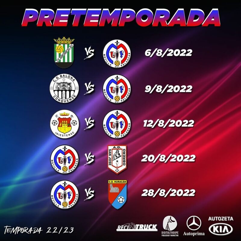 El Motilla C.F ha publicado los partidos de pretemporada 22/23 que disputarán durante el mes de Agosto ¡Apunta las fechas!