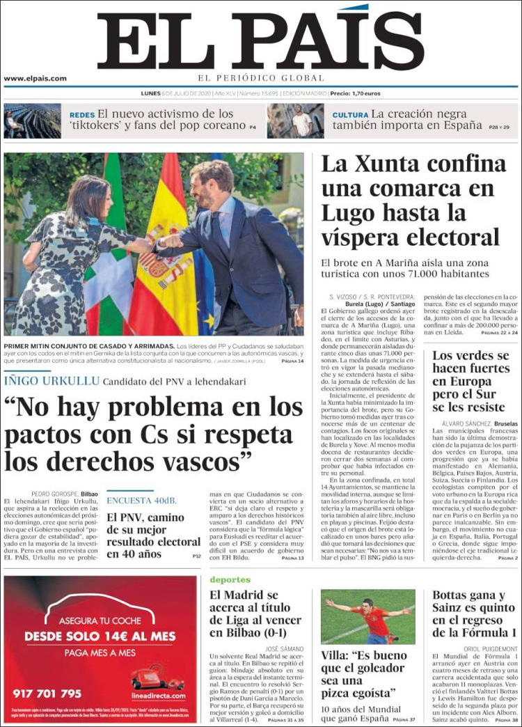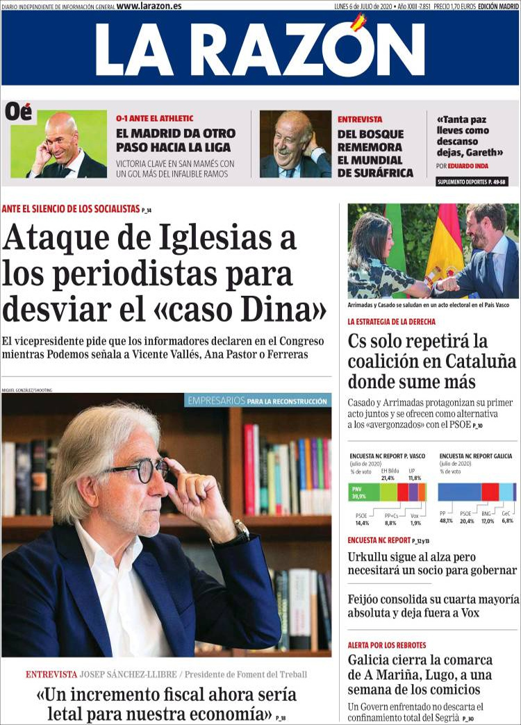 Principales portadas de hoy 0 de Julio de 2020