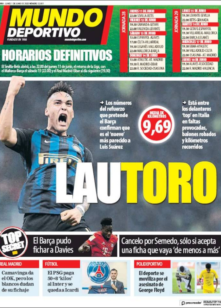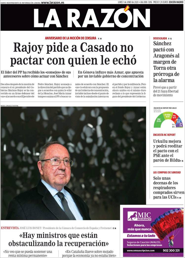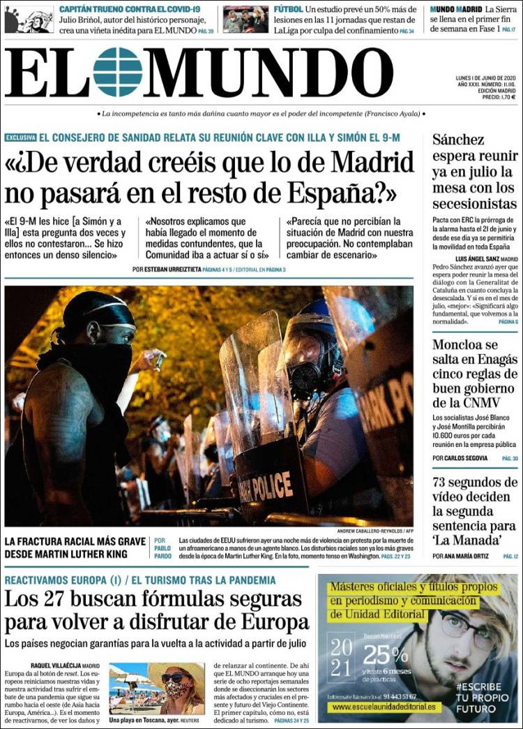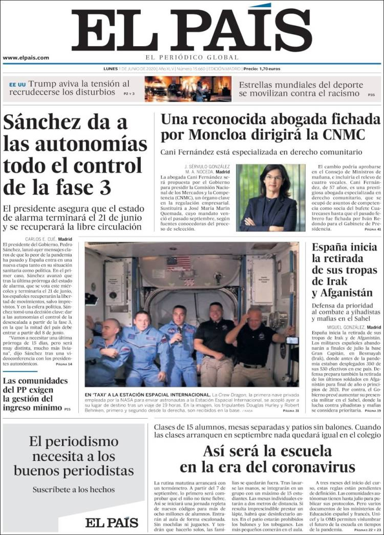 Principales portadas de hoy 01 de Junio de 2020