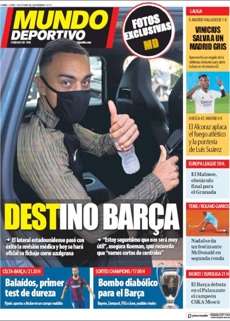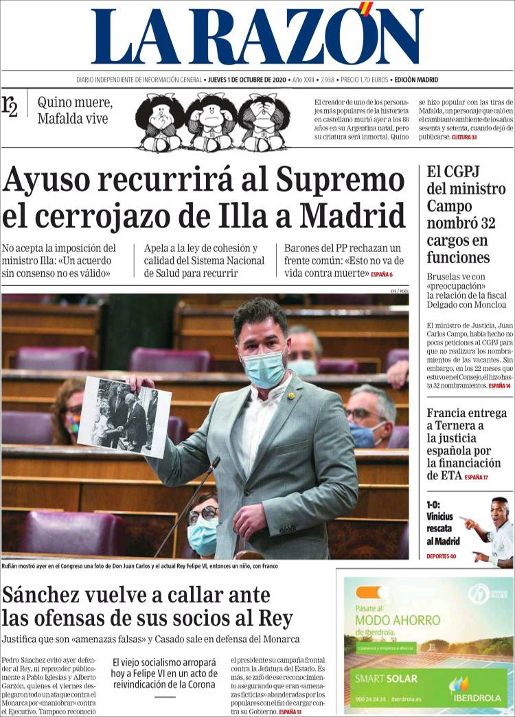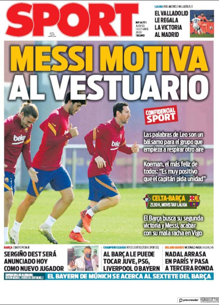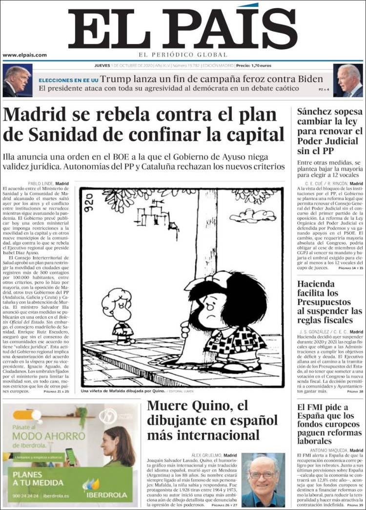 Principales portadas de hoy 01 de Octubre de 2020