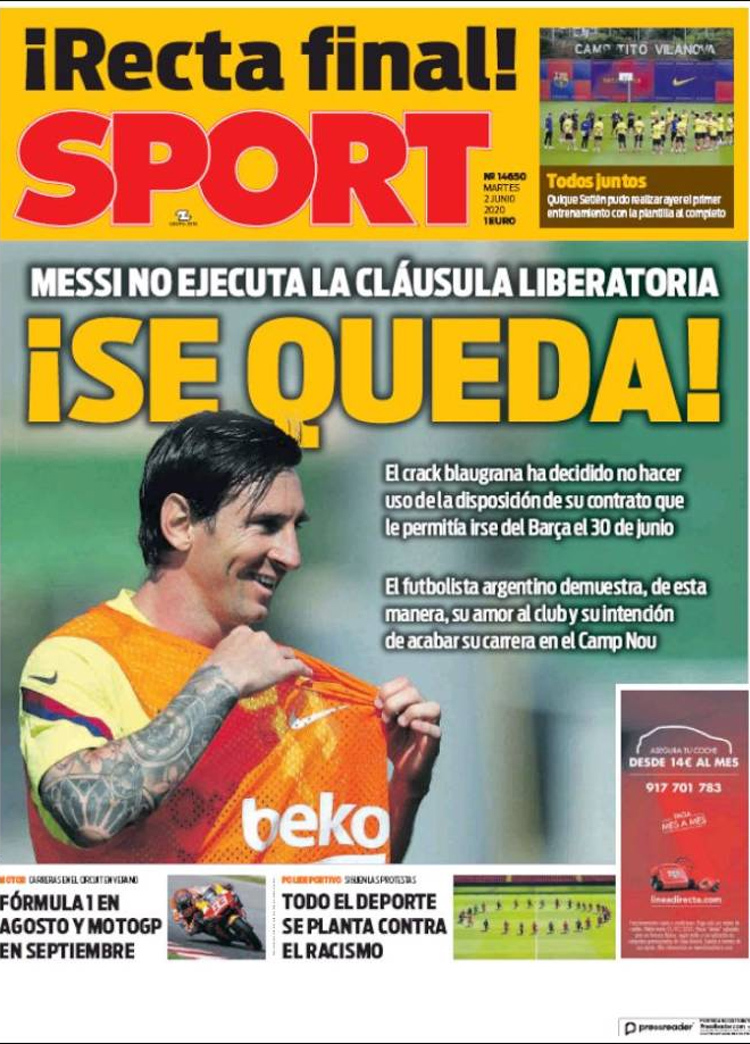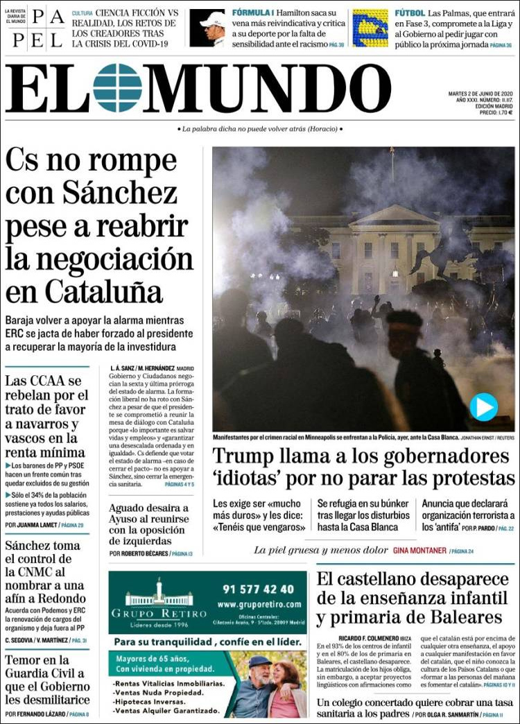 Principales portadas de hoy 02 de Junio de 2020