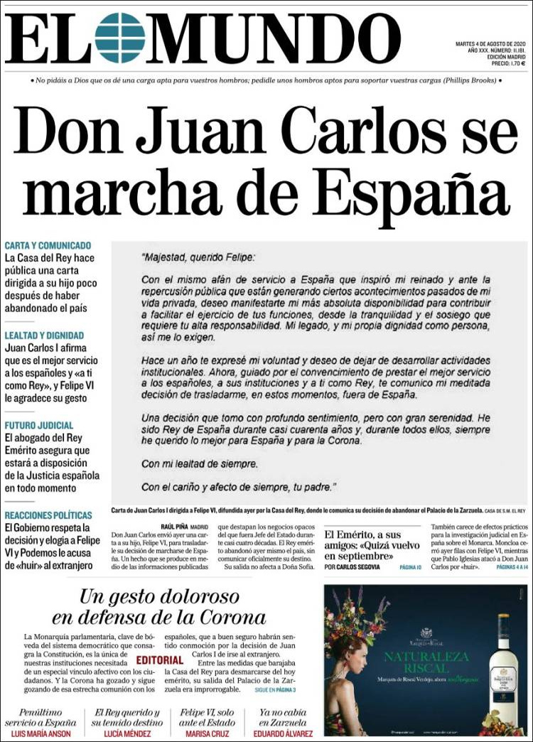 Principales portadas de hoy 04 de Agosto de 2020