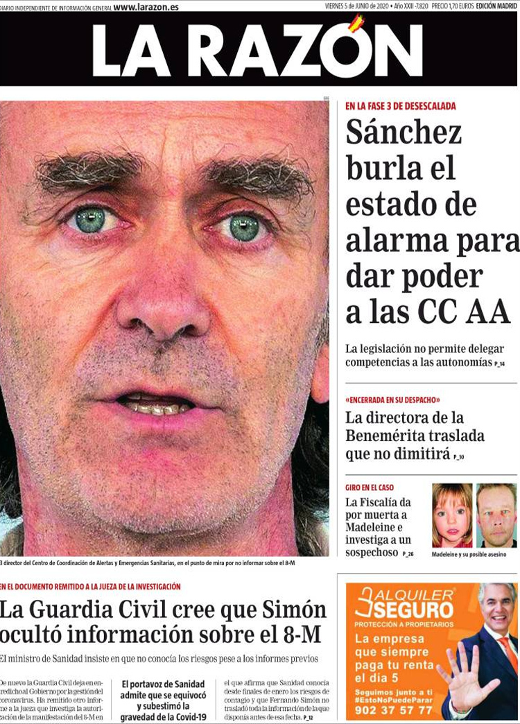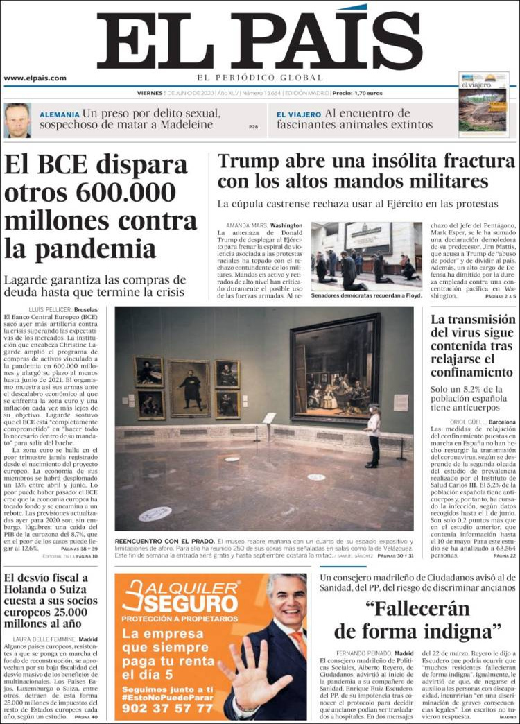 Principales portadas de hoy 05 de Junio de 2020