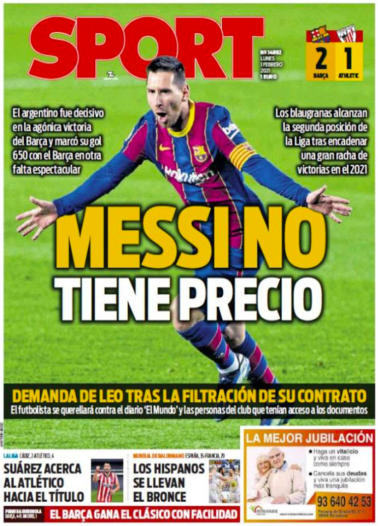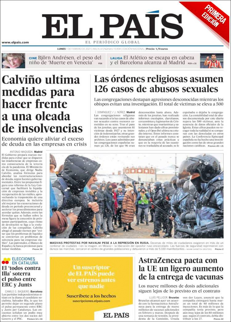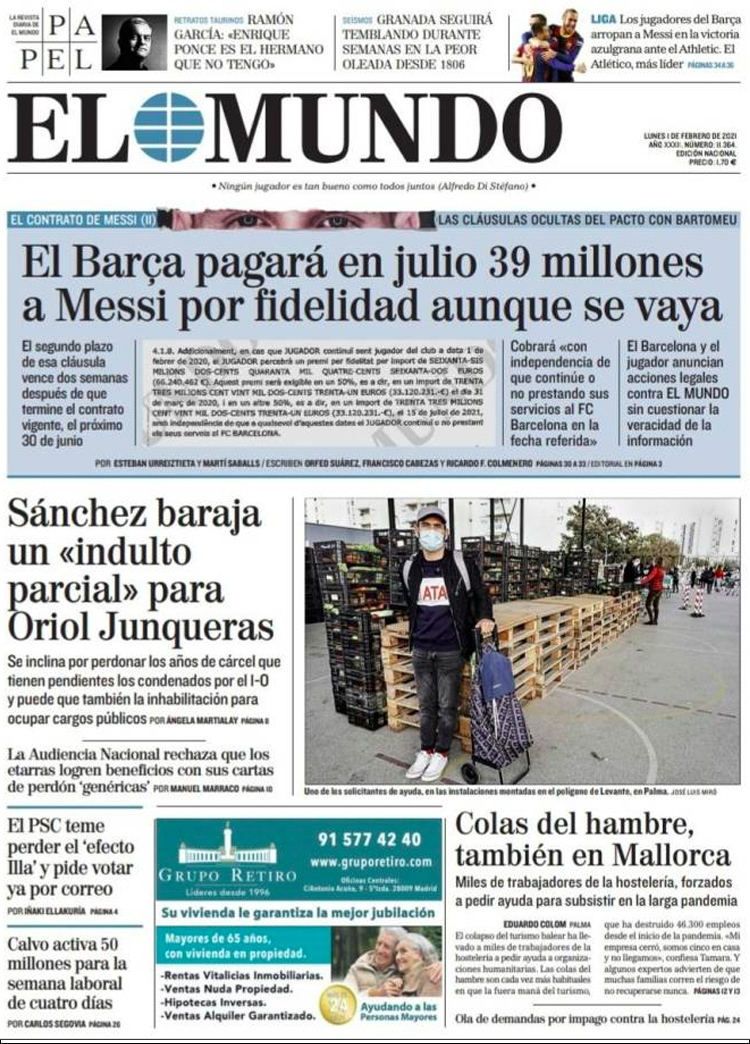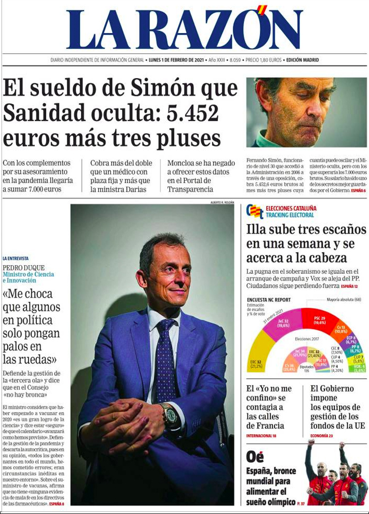 Principales portadas de hoy 1 de Febrero de 2021