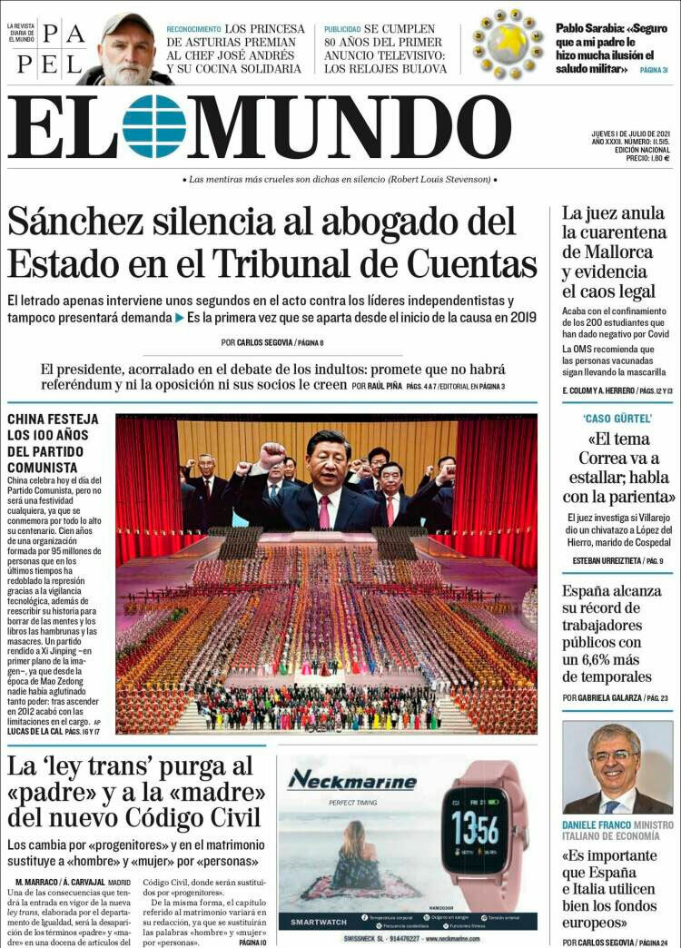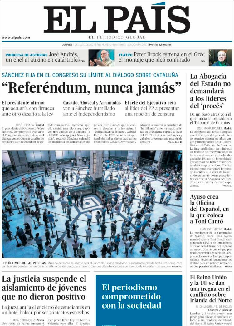 Principales portadas de hoy 1 de Julio de 2021