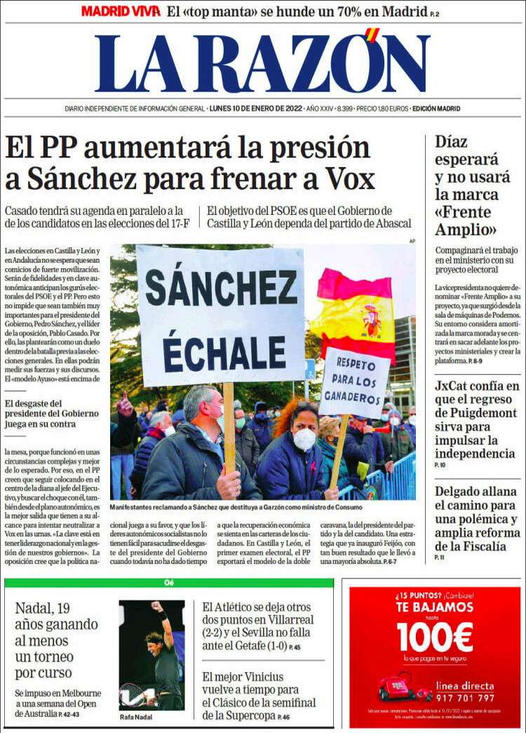 Principales portadas de hoy 10 de Enero de 2022