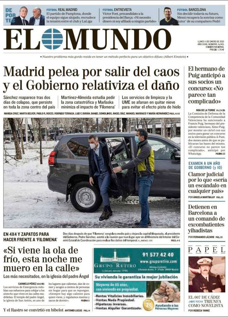 Principales portadas de hoy 11 de Enero de 2021