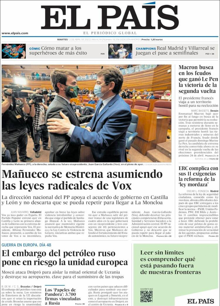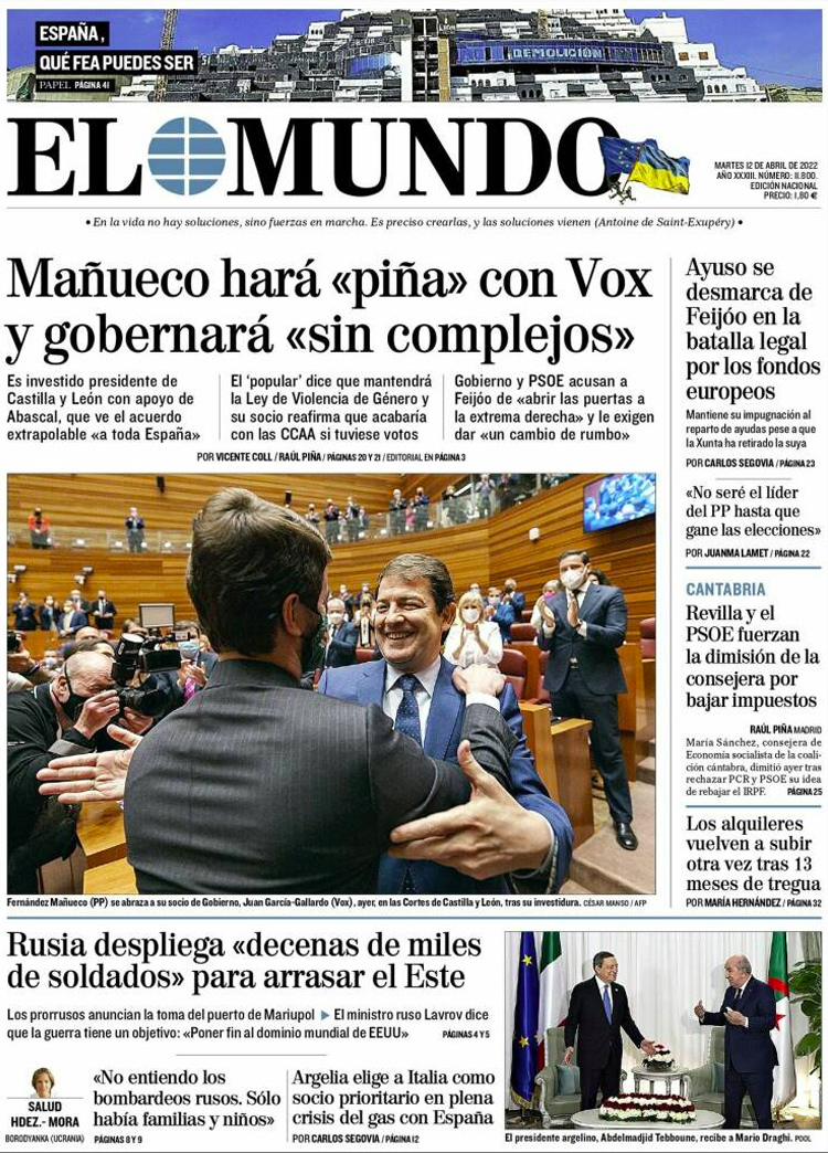 Principales portadas de hoy 12 de Abril de 2022