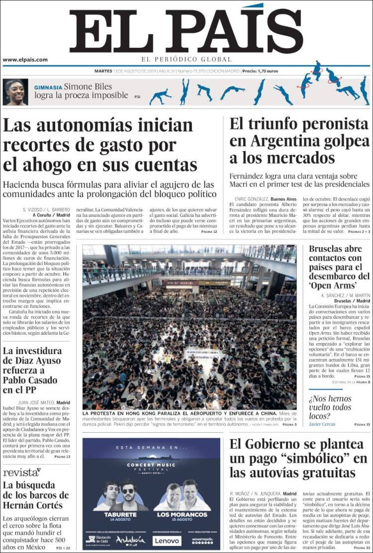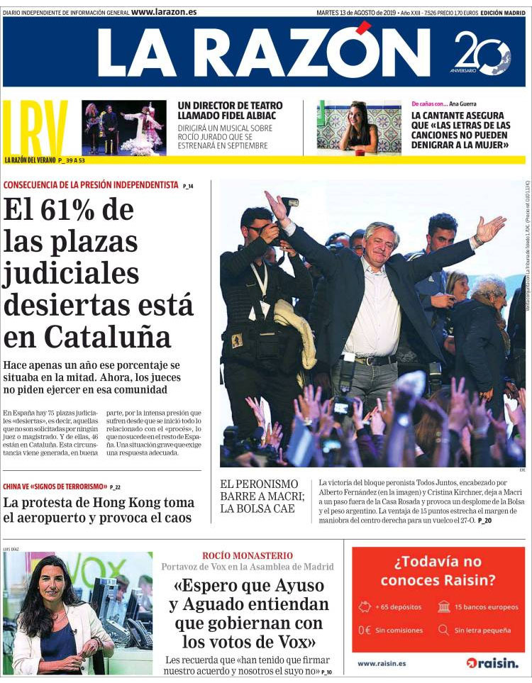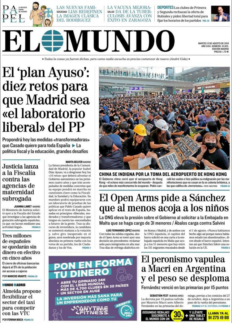 Principales portadas de hoy 13 de Agosto de 2019