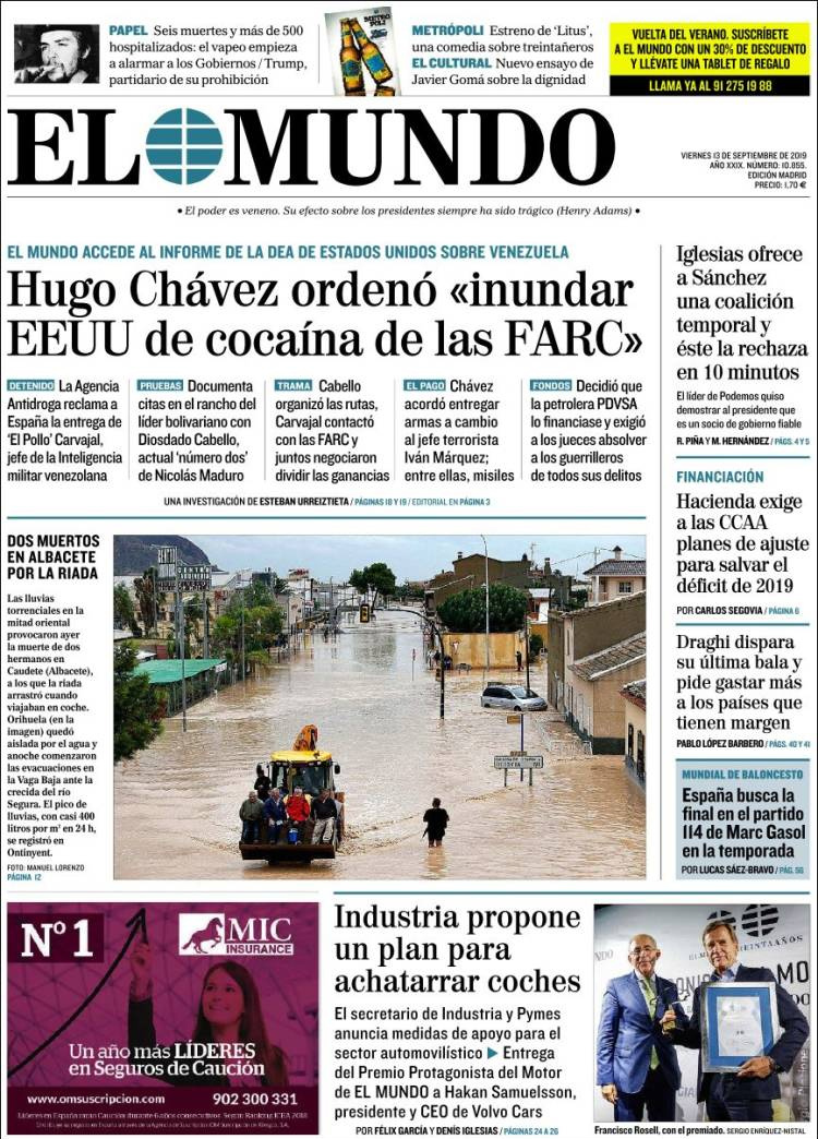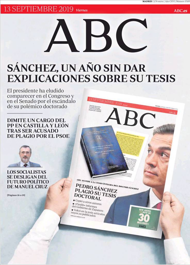 Principales portadas de hoy 13 de Septiembre de 2019