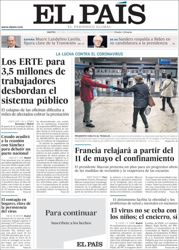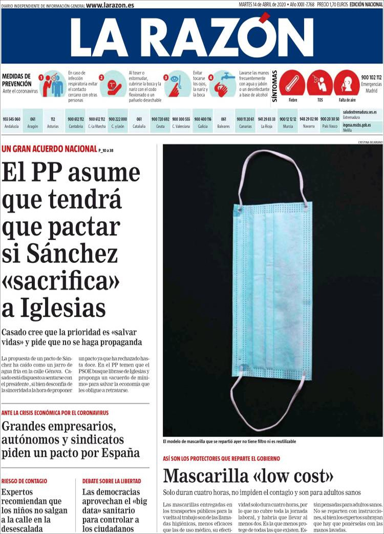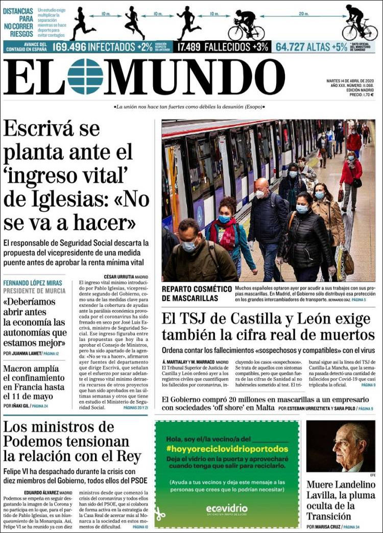 Principales portadas de hoy 14 de Abril de 2020