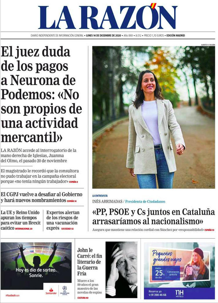 Principales portadas de hoy 14 de Diciembre de 2020
