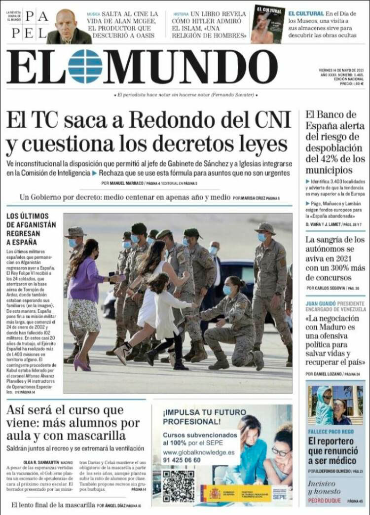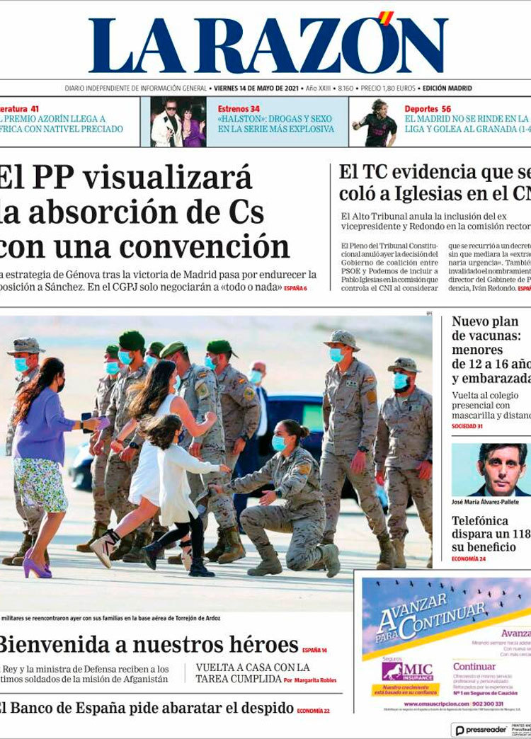Principales portadas de hoy 14 de Mayo de 2021