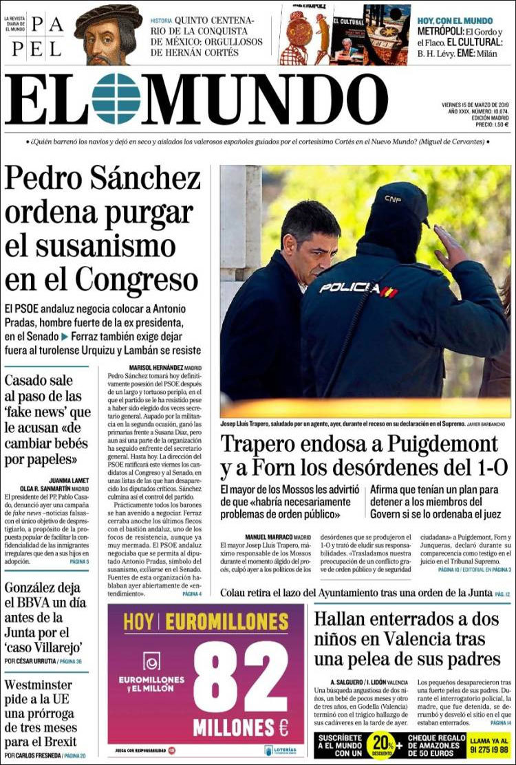 Principales portadas de hoy 15 de Marzo de 2019