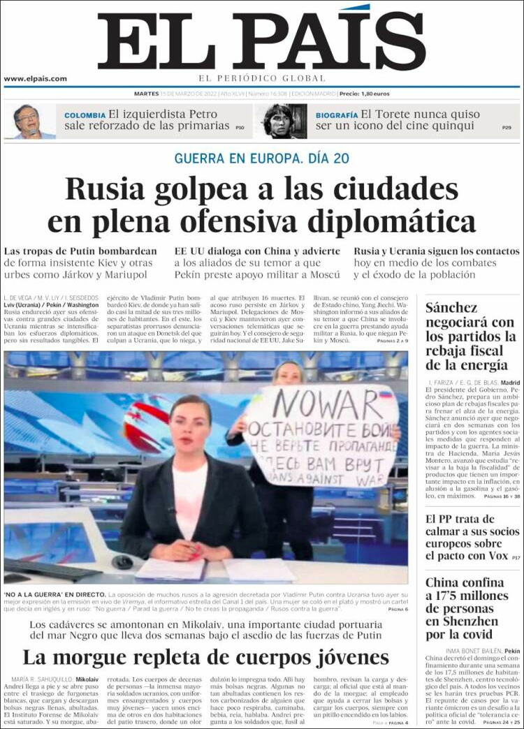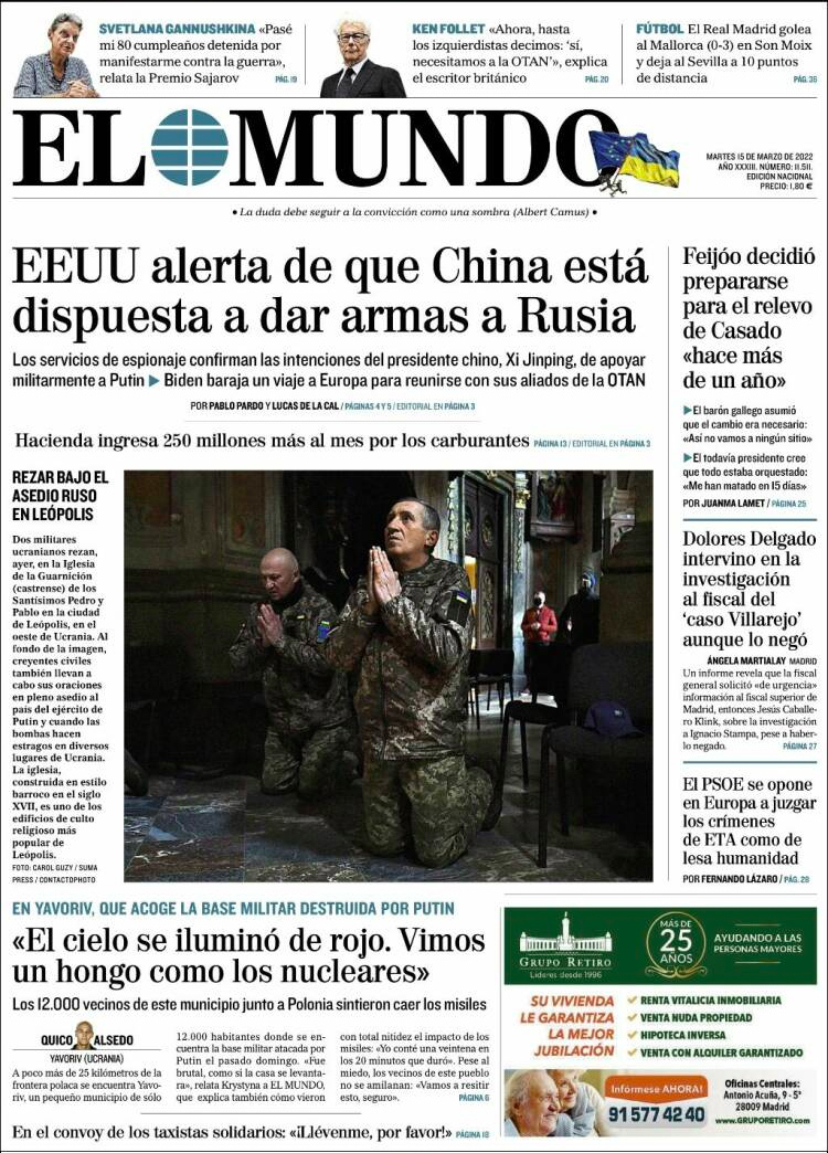 Principales portadas de hoy 15 de Marzo de 2022