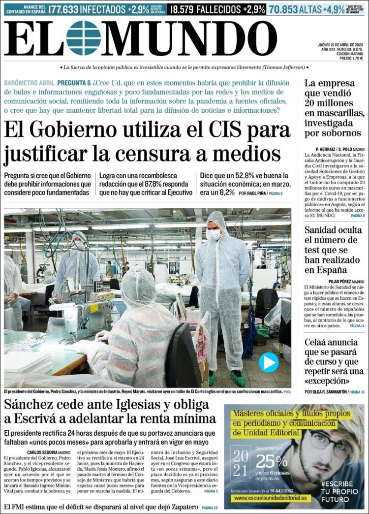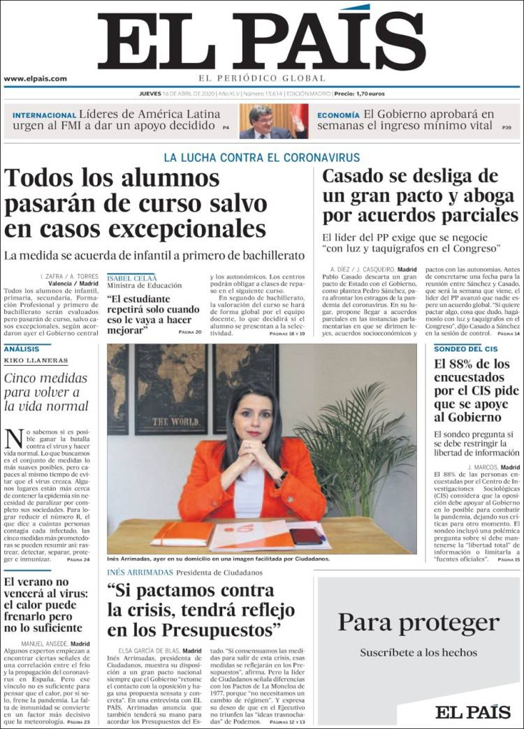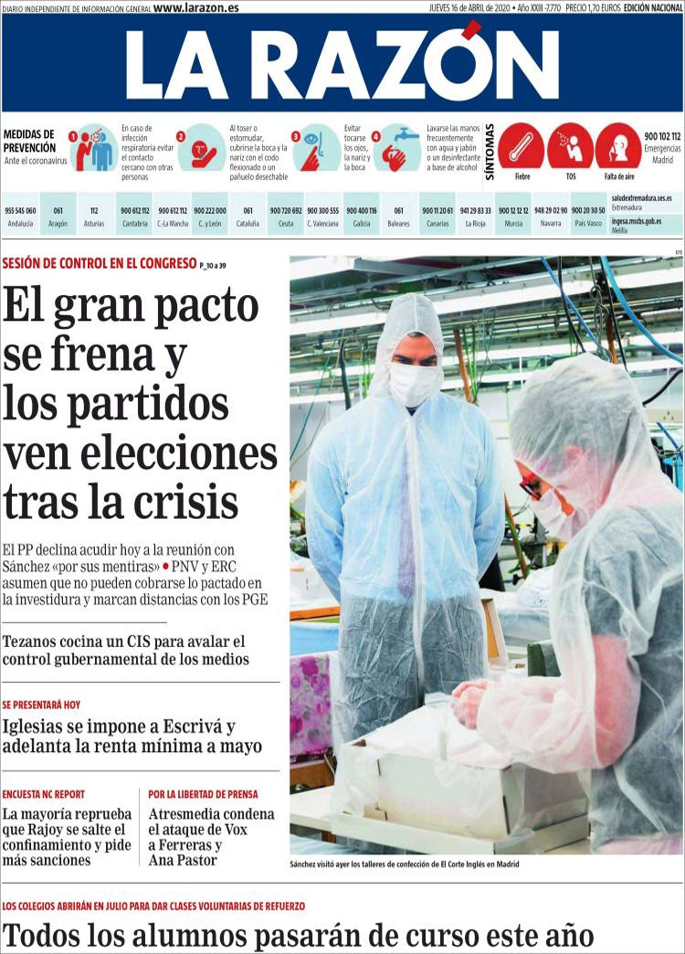 Principales portadas de hoy 16 de Abril de 2020