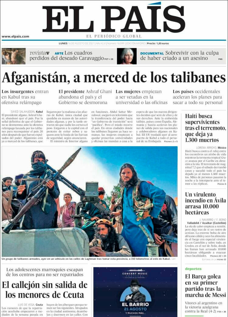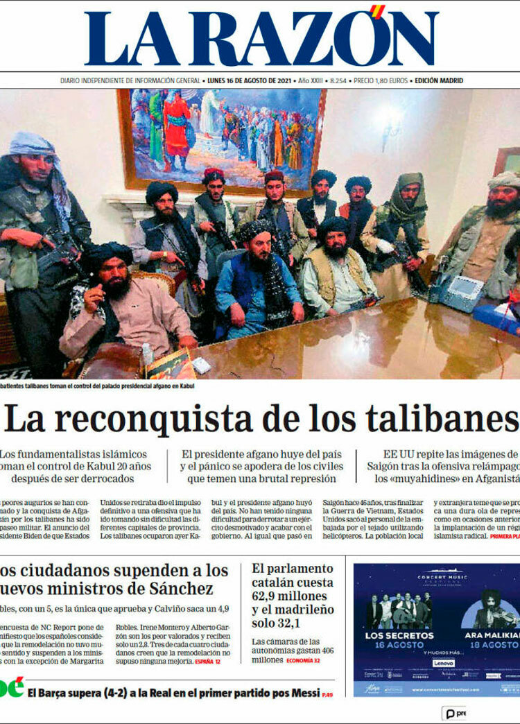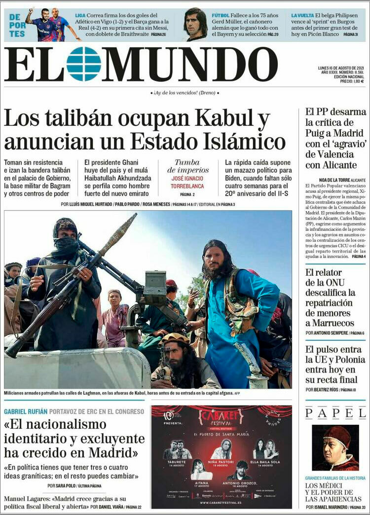 Principales portadas de hoy 16 de Agosto de 2021