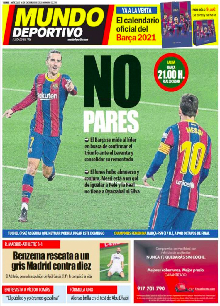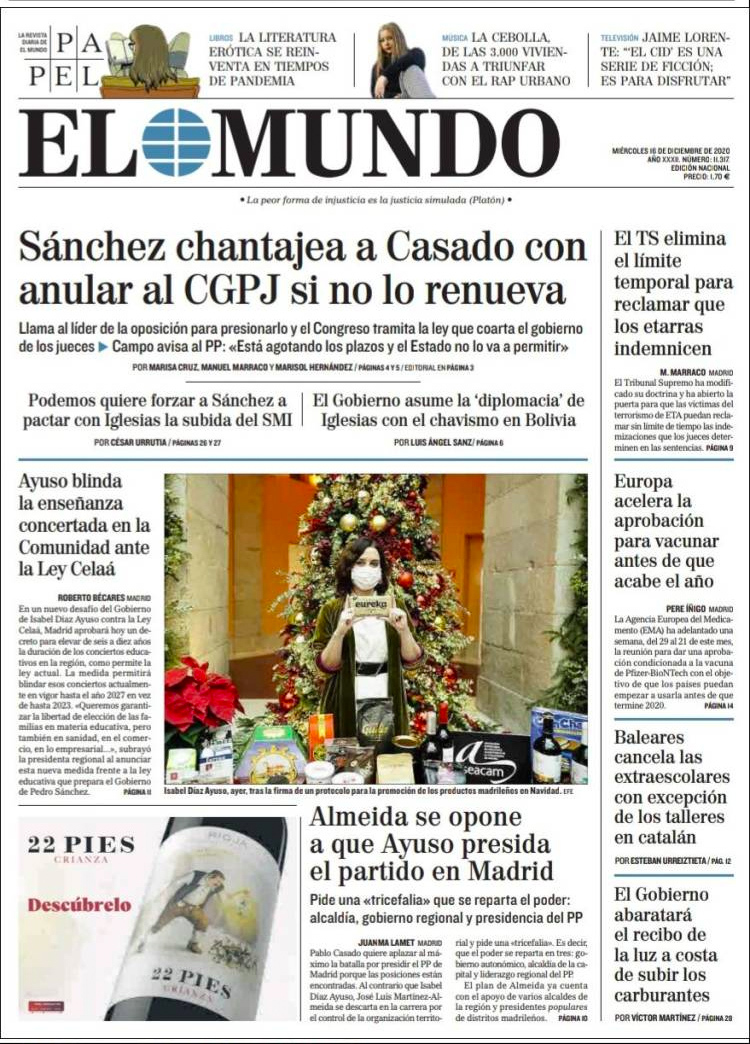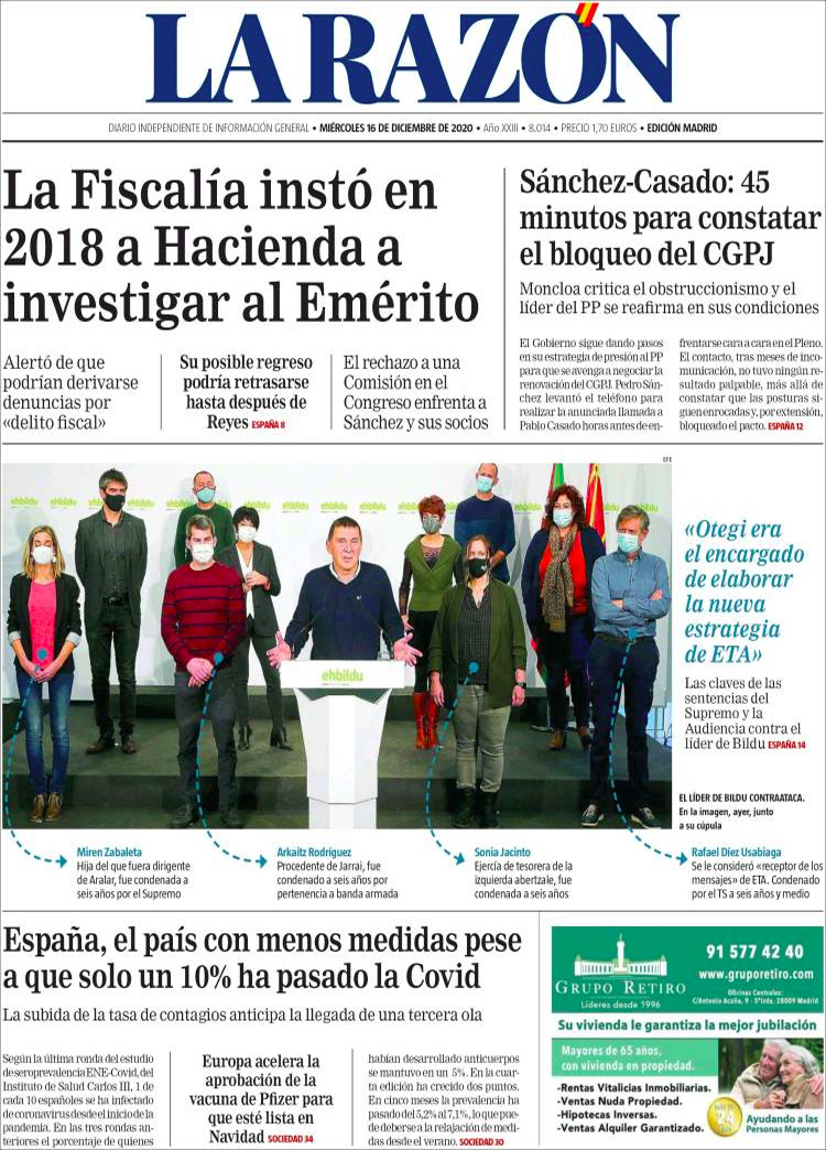 Principales portadas de hoy 16 de Diciembre de 2020