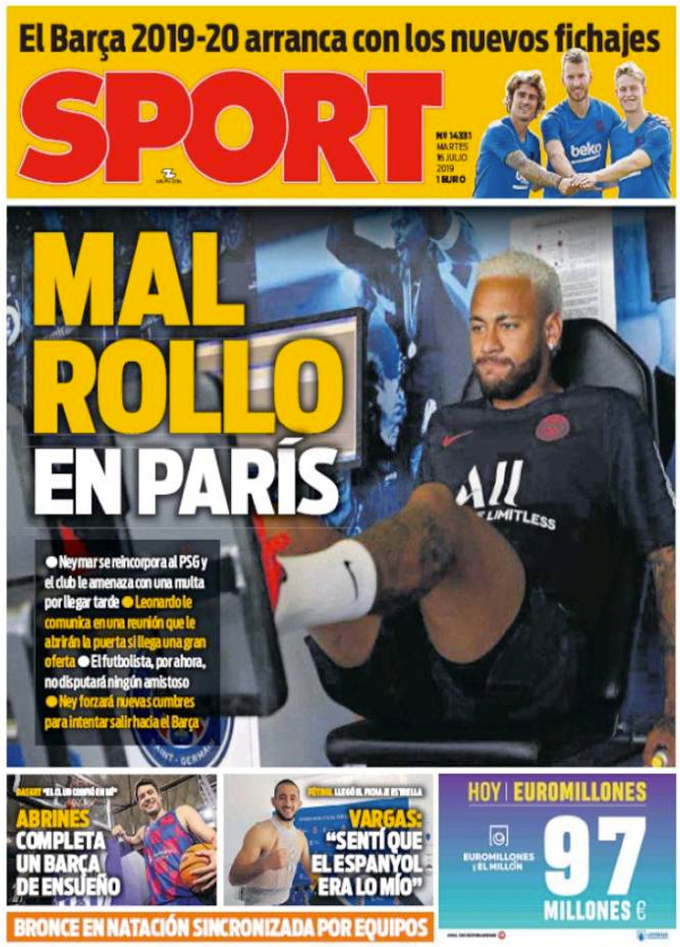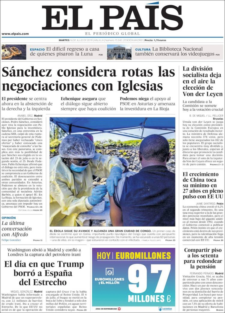 Principales portadas de hoy 16 de Julio de 2019