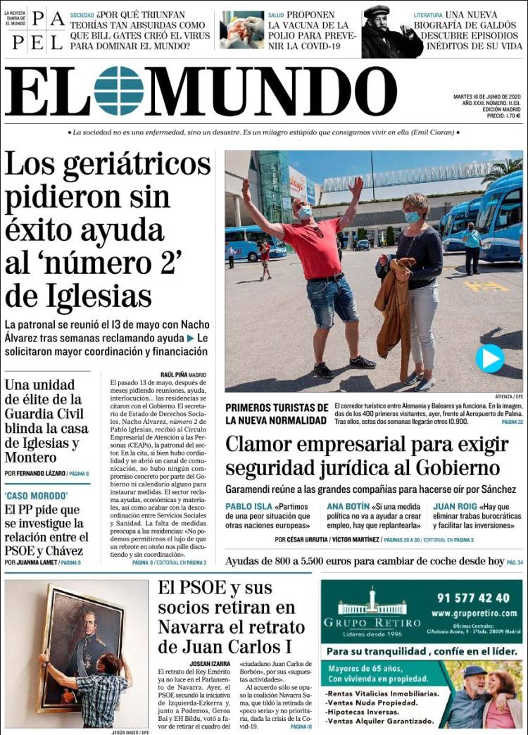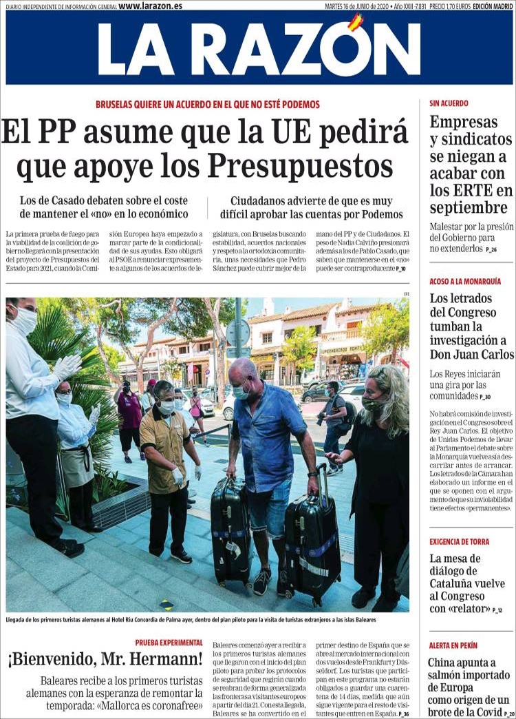 Principales portadas de hoy 16 de Junio de 2020