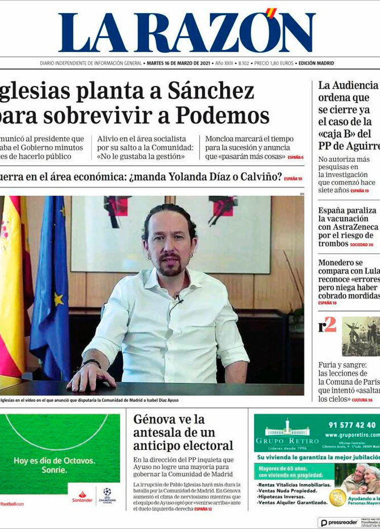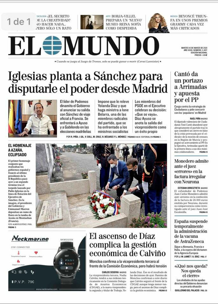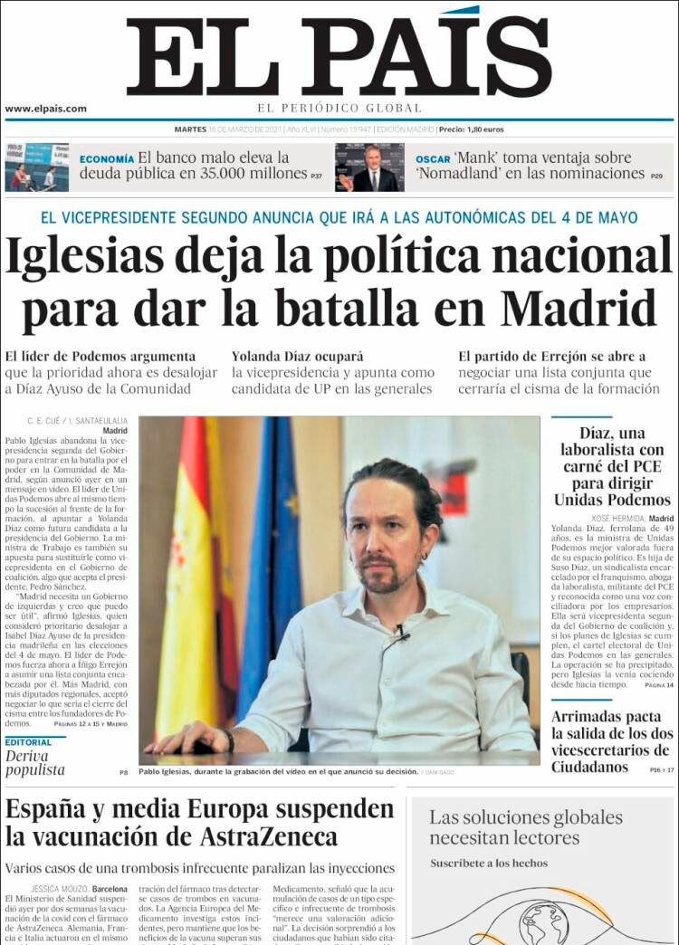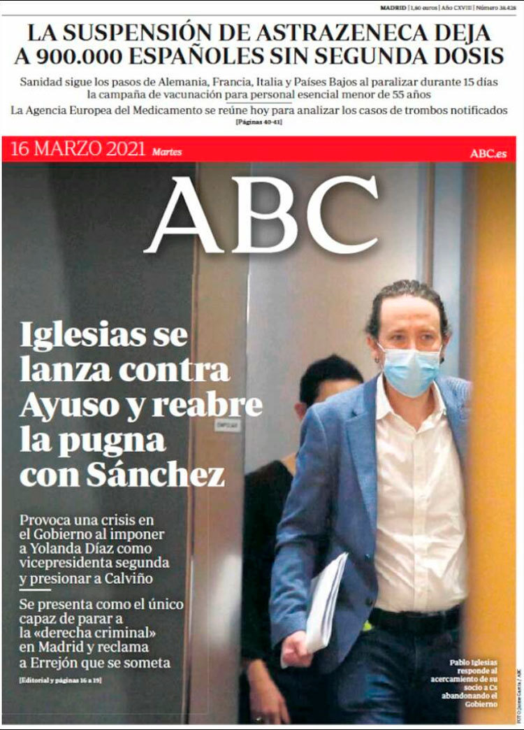 Principales portadas de hoy 16 de Marzo de 2021