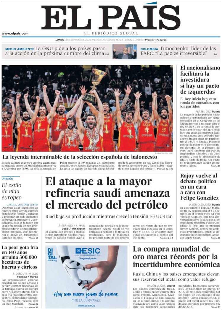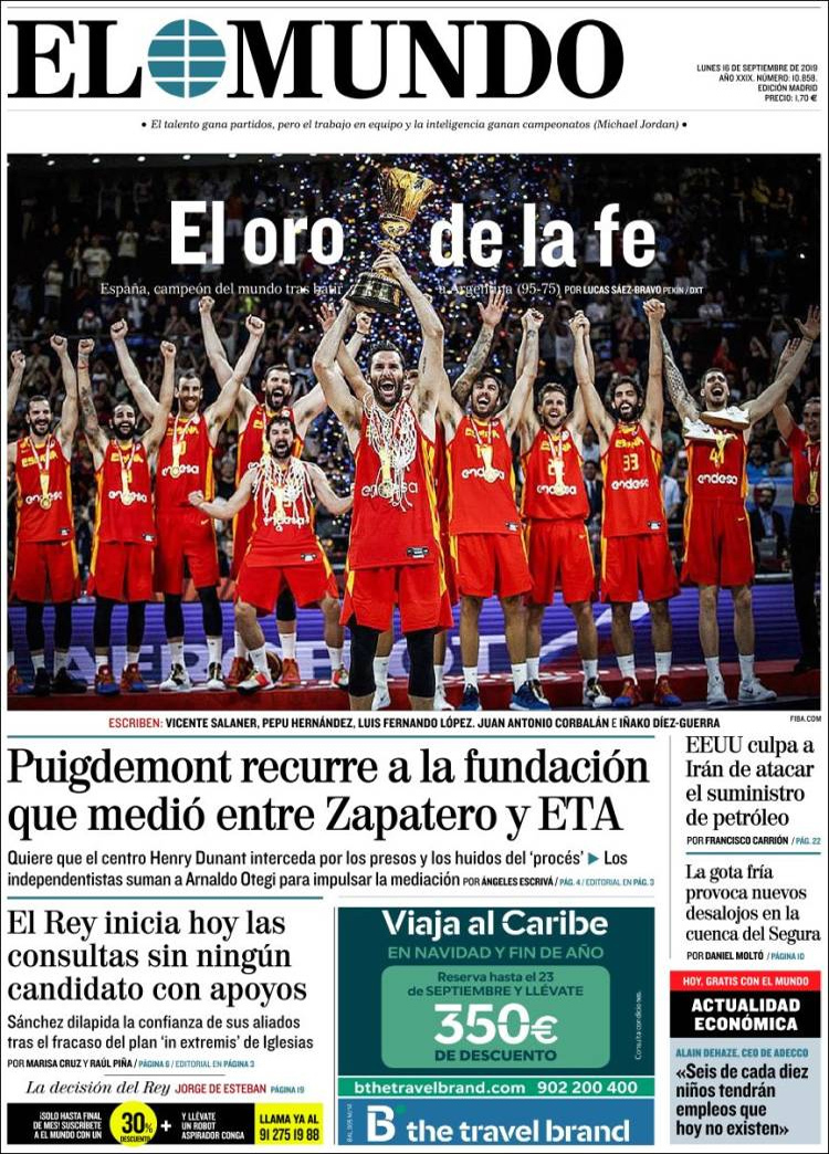 Principales portadas de hoy 16 de Septiembre de 2019