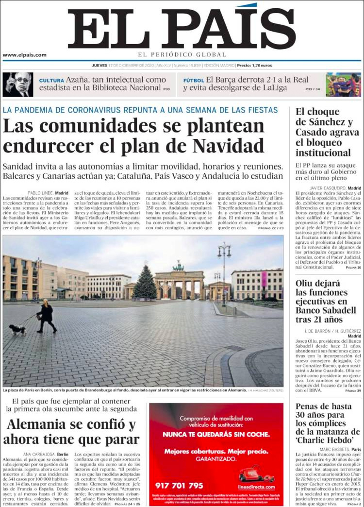 Principales portadas de hoy 17 de Diciembre de 2020
