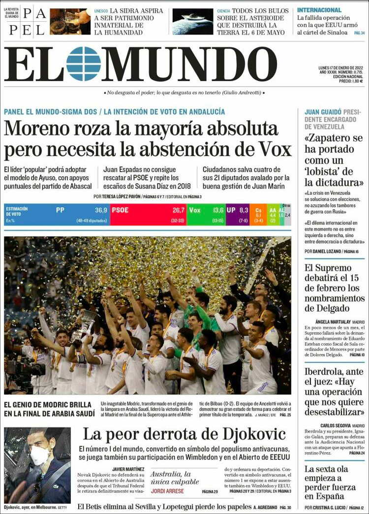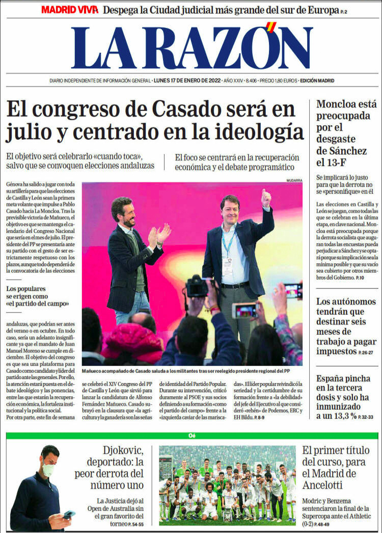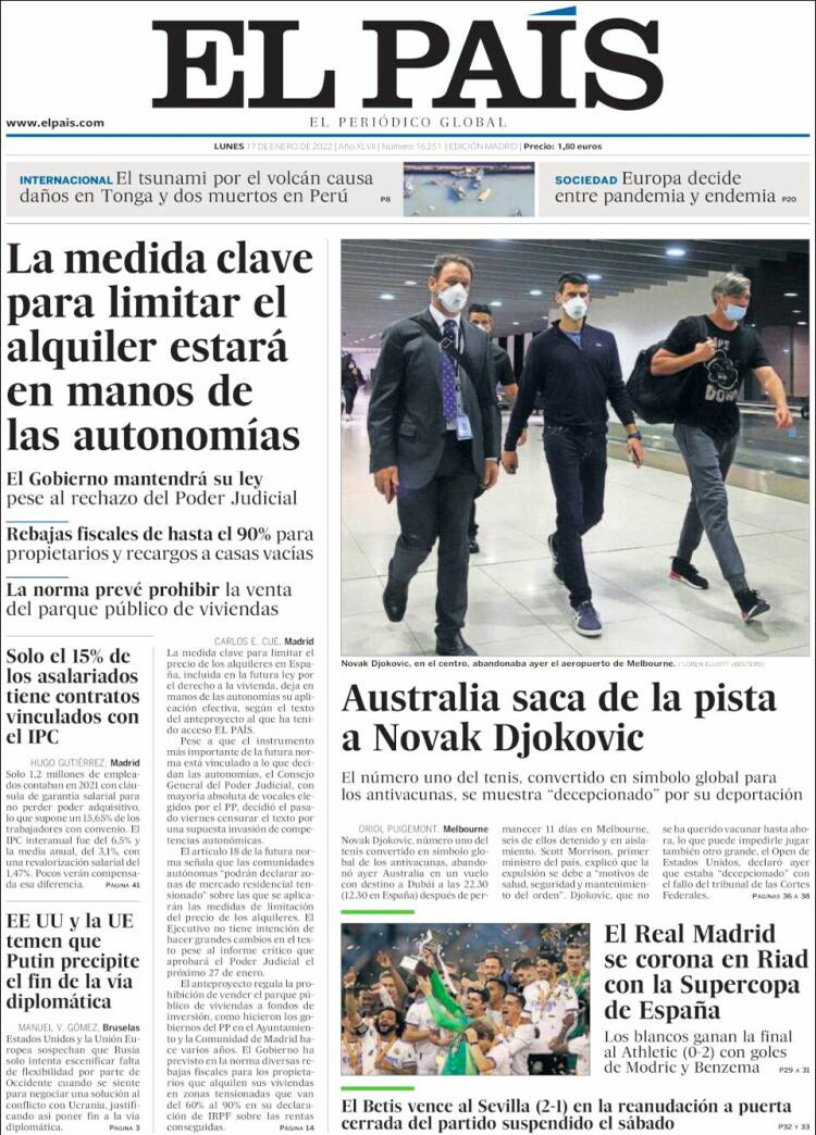 Principales portadas de hoy 17 de Enero de 2022