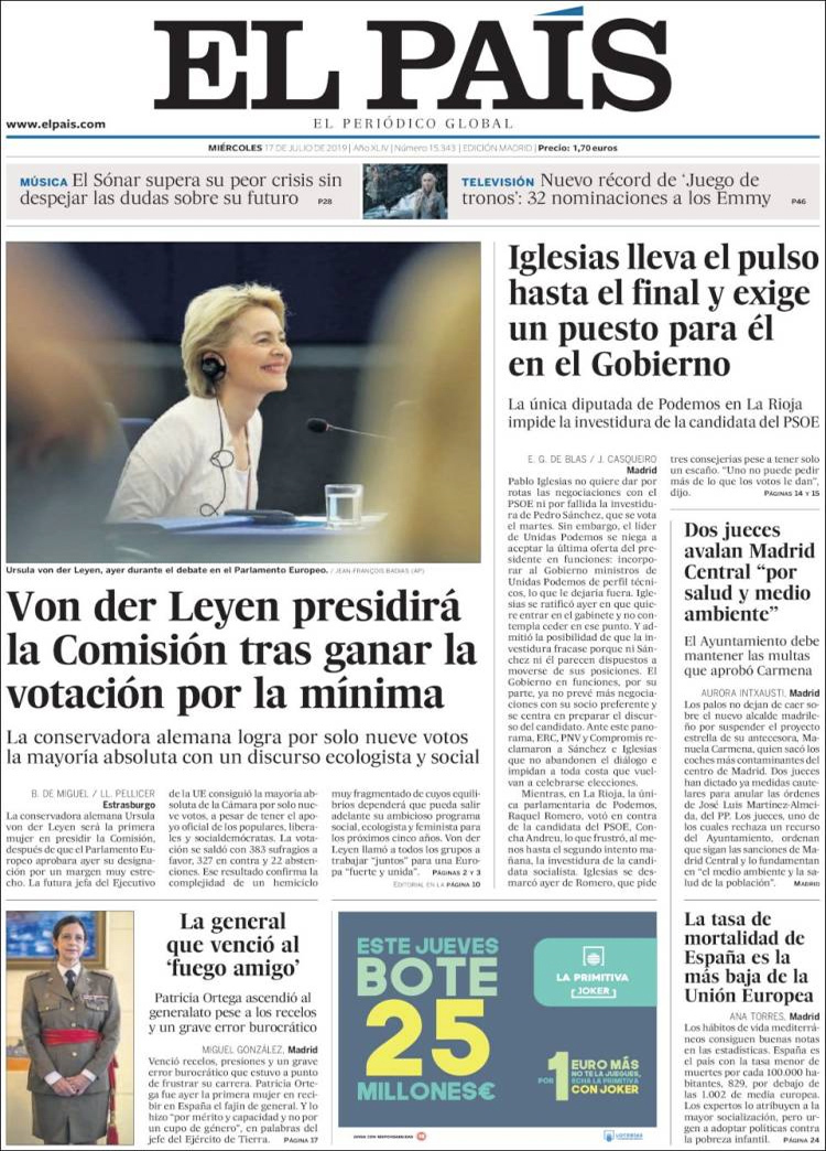 Principales portadas de hoy 17 de Julio de 2019