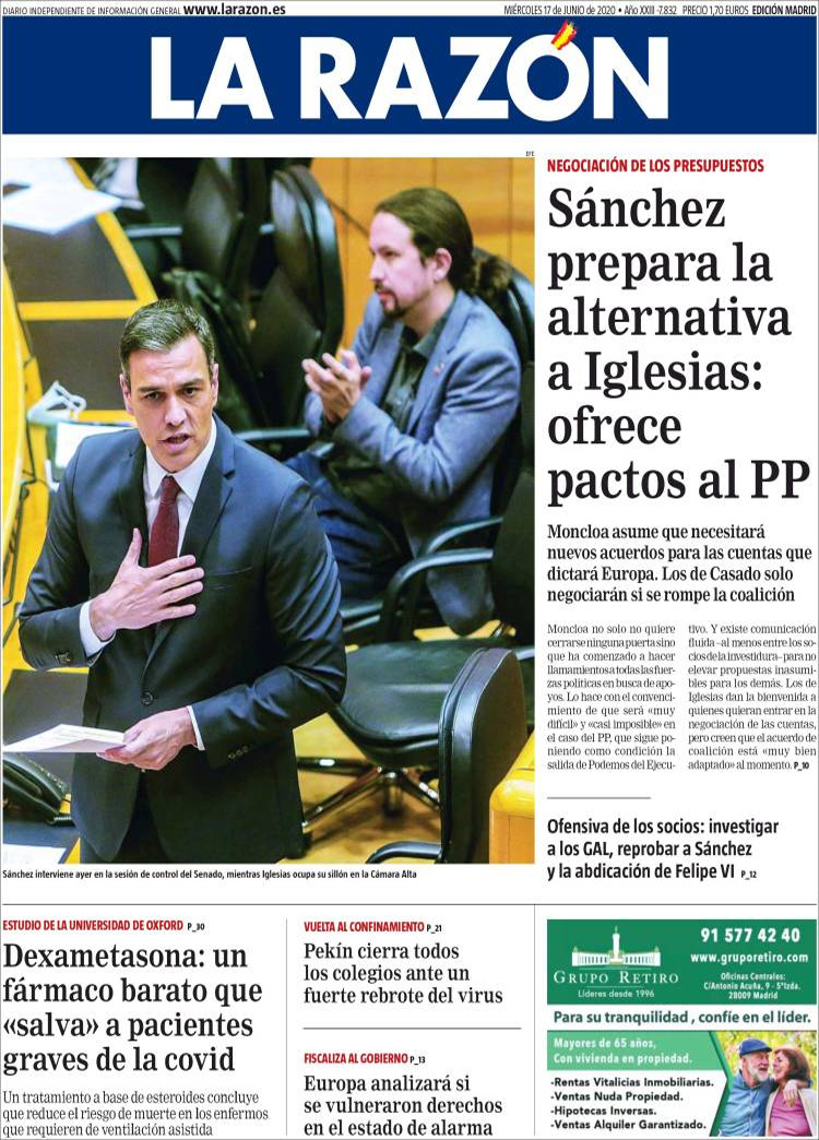 Principales portadas de hoy 17 de Junio de 2020