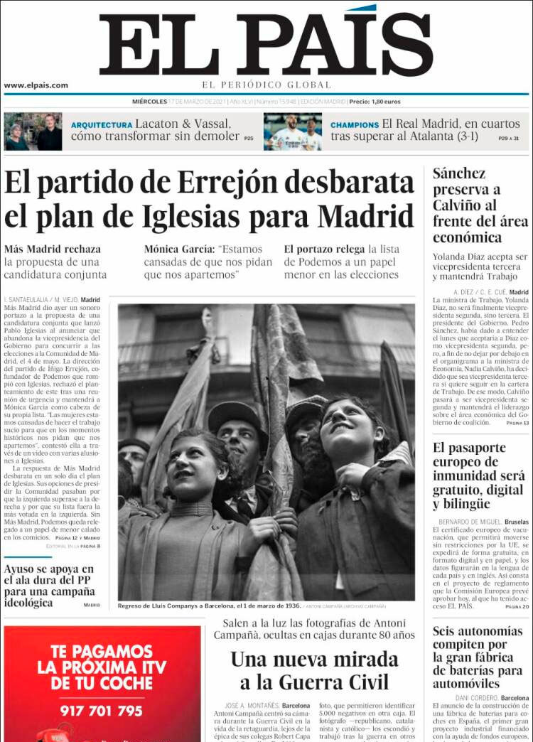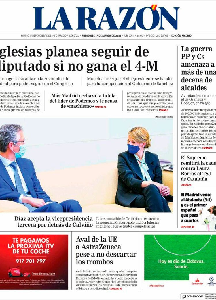 Principales portadas de hoy 17 de Marzo de 2021